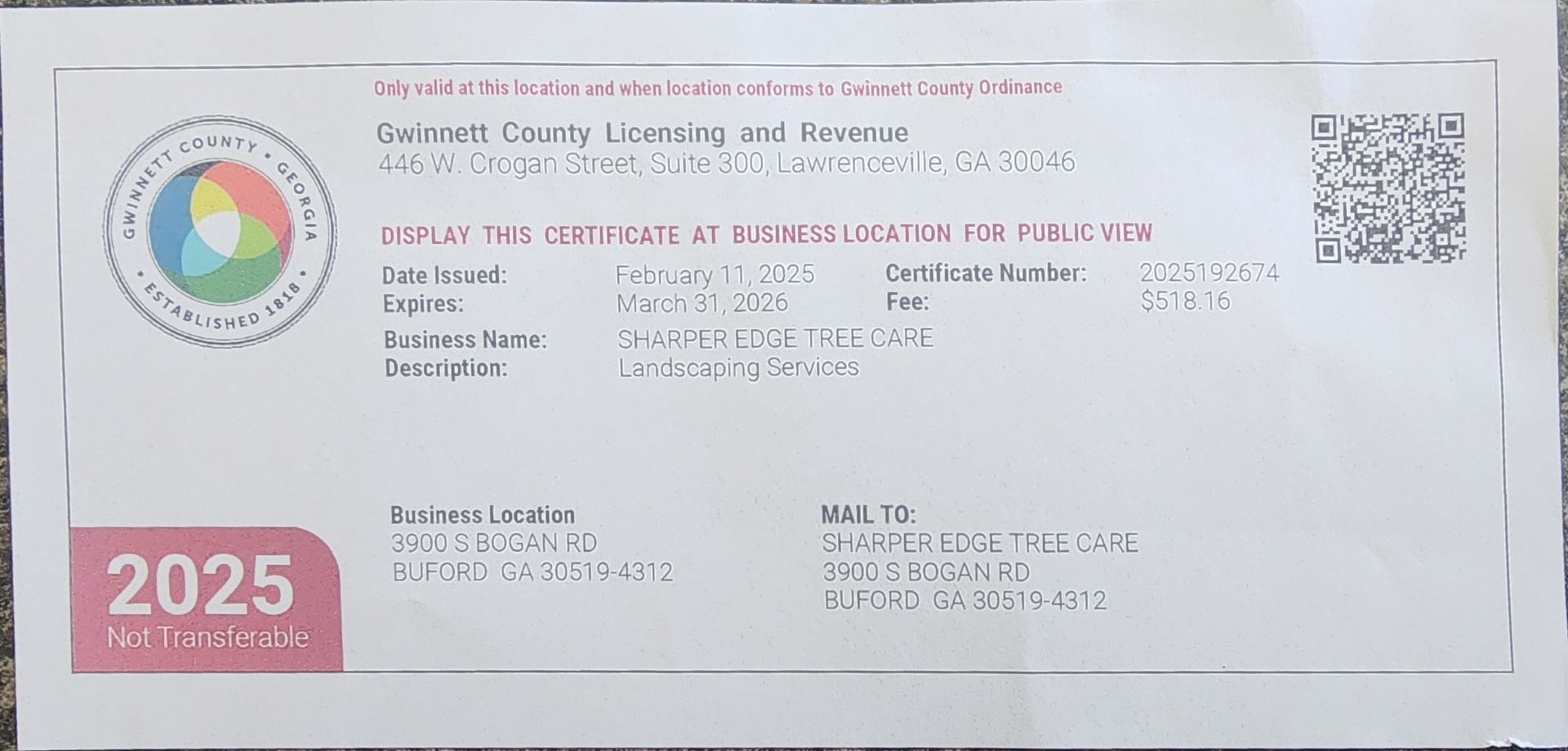 THANK YOU FOR CONSIDERING SHARPER EDGE TREE CARE!